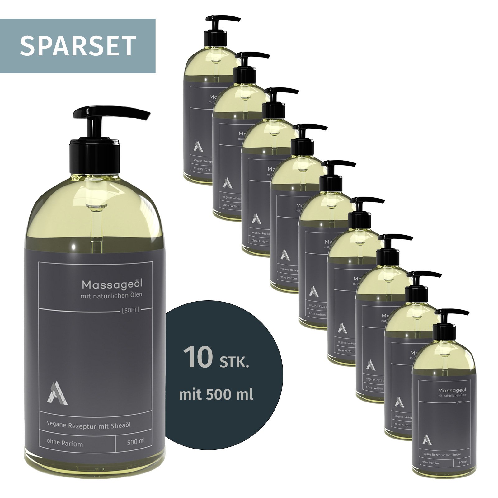 1A Massageöl SOFT | mit natürlichen Ölen | 500 ml | inkl. Pumpspender | 10er SparSet